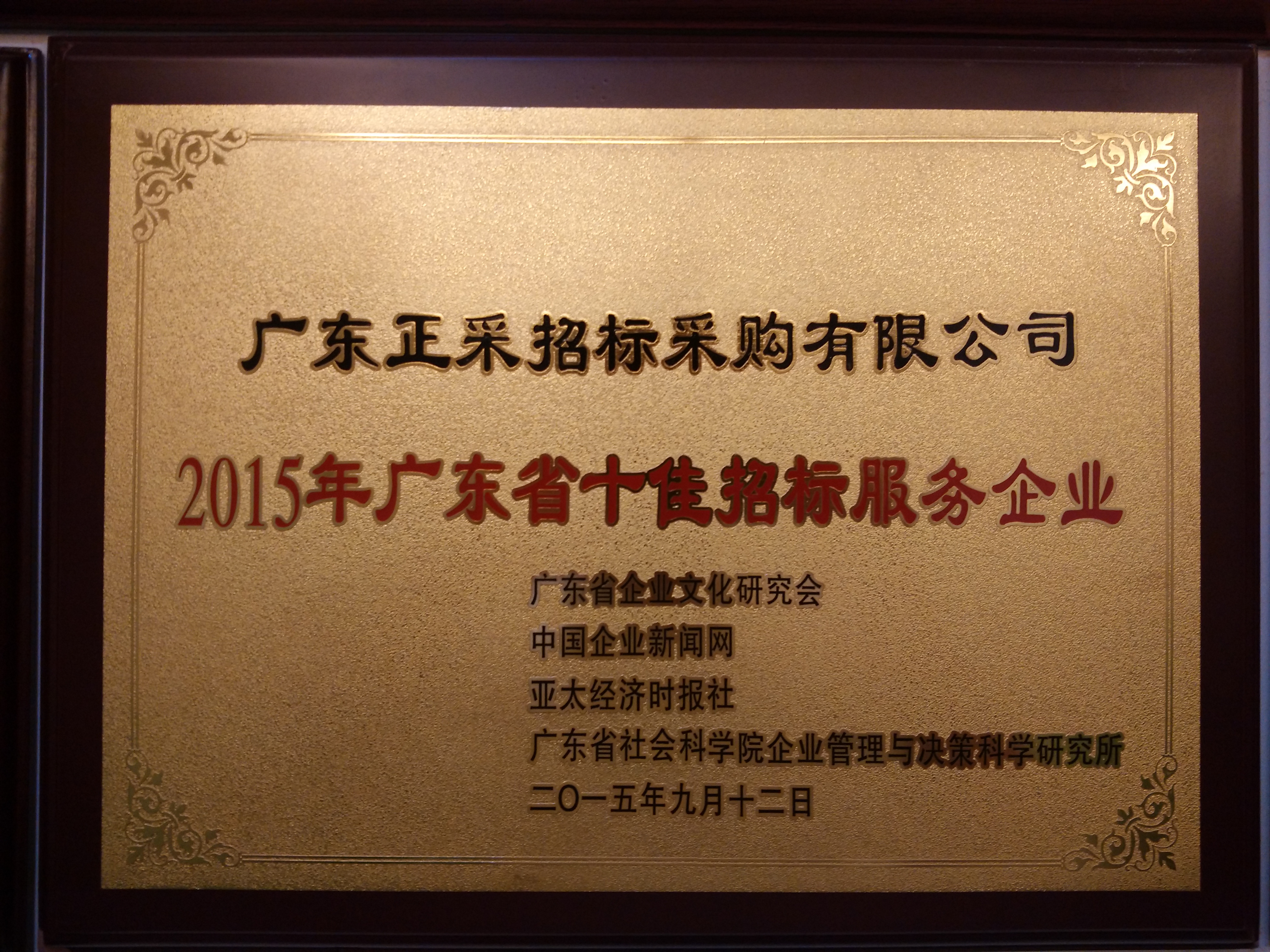 2015年廣東省十佳招標(biāo)服務(wù)企業(yè)
